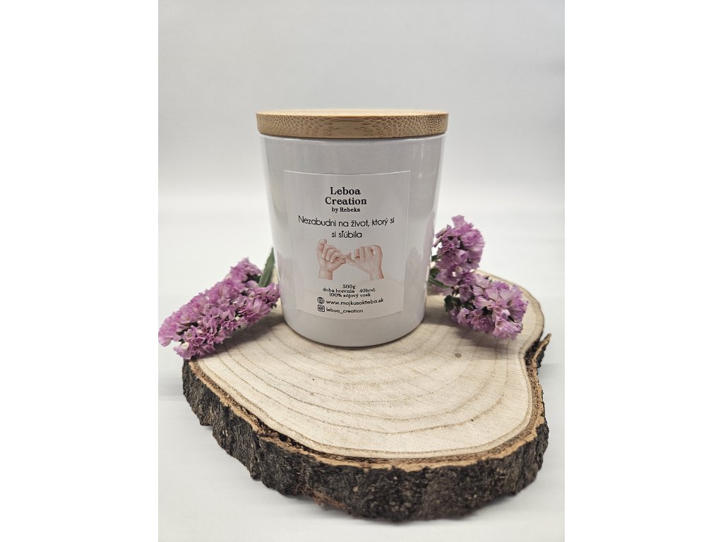 Vonná sviečka vyrobená zo 100% sójového vosku, bez škodlivých látok.